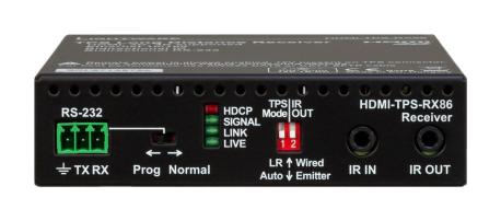 Ricevitore HDBaseT HDMI 1.4 + RS-232 + bidirectional IR via cavo CATx. HDCP, 3D and 4K/UHD (30 Hz RGB 4:4:4, 60 Hz YCbCr 4:2:0) compliant. Operation mode selezionabile (Auto o forced Long Reach mode), massima distanza 170 m.