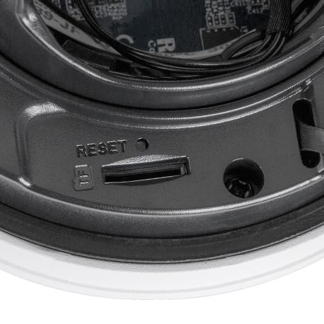 La telecamera è dotata di microfono integrato, supporto per schede microSD fino a 256GB per registrazione locale, motion detection e analisi video intelligente con rilevamento avanzato di persone e veicoli. Il corpo compatto e discreto in formato Dome (Ø110mm × 60mm) è certificato CE, FCC, ETL e conforme allo standard NDAA. Il prodotto è coperto da una garanzia limitata di 3 anni. Colore bianco