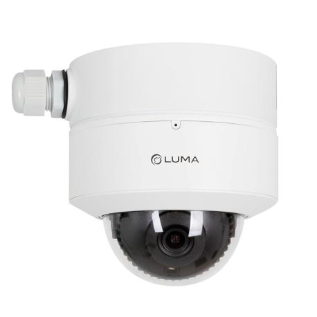 La scatola di giunzione LUMA LUM-A20-JB-FX-DOMW è progettata per il montaggio a parete di telecamere Fixed Dome della serie Luma X20. Realizzata in alluminio verniciato bianco, offre protezione IP67 contro polvere e acqua, garantendo un'installazione ordinata e protetta. Compatibile con i modelli LUM-220-IP-TFW e LUM-820-IP-TFW.