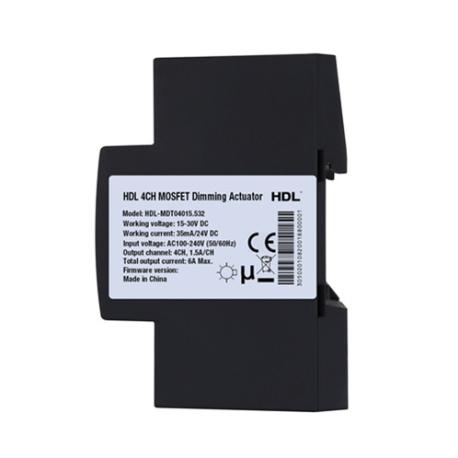Dimmer MOSFET professionale progettato per il controllo avanzato dell’illuminazione, HDL-MDT04015.532 offre 4 canali da 1,5A ciascuno (6A Max totali), supportando trailing-edge dimming per carichi resistivi e capacitivi come lampade LED dimmerabili, driver LED, alogene e incandescenti. Ogni canale integra tasto bypass e LED di stato, permettendo interventi manuali immediati e una diagnostica rapida durante installazione e manutenzione. Il modulo consente la creazione di fino a 2 zone con 12 scene per zona, oltre a 6 sequenze da 12 step ciascuna, selezionabili in diverse modalità (avanti, indietro, alternato, casuale), garantendo una gestione luminosa flessibile e personalizzabile. Sono disponibili quattro curve di dimmerazione (lineare, 1.5x, 2.0x, 3.0x) per adattarsi a vari tipi di carico e ottenere una regolazione più fluida. Dotato di protezioni contro cortocircuiti, sovratensioni e surriscaldamento, funziona a 110/220 V AC, comunica tramite HDL Buspro ed è installabile su guida DIN per integrazione ottimale in quadri elettrici professionali. Ideale per progetti smart home e retail che richiedono dimmerazione stabile, silenziosa e precisa. Dimensioni: 144mm x 90mm x 66mm (LxAxP)