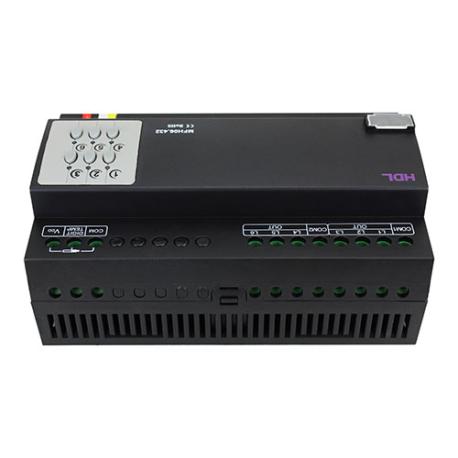 L’HDL MFH06.432 è un modulo per riscaldamento a pavimento a 6 canali, progettato per sistemi di automazione Buspro, ideale per il controllo avanzato di temperatura in ambienti residenziali e commerciali. Ogni canale supporta sia uscita a relè (1A) sia uscita 0–10 V, permettendo la gestione di valvole elettriche AC/DC e valvole modulanti. Il dispositivo integra un controller PI e supporta fino a 13 sensori digitali DS18B20, con una precisione di 0,5 °C e lunghezza massima del cavo di 100 metri, garantendo un monitoraggio accurato della temperatura di stanza e pavimento.