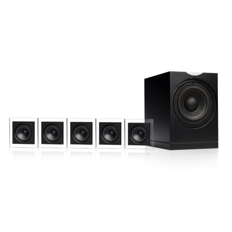 Kit sistema audio Home Theatre composto da: N.5 Waterfall Audio Serio, N.1 Waterfall audio HFM-200, finitura nera.