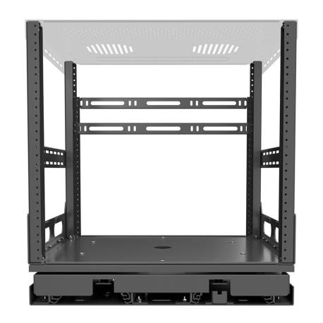 Il STRONG SR-CAB-SLIDE-10U è un cabinet rack scorrevole progettato per apparecchiature standard, con un’altezza utile di 10 unità rack (10U). Realizzato in acciaio verniciato nero opaco ad alta resistenza, garantisce robustezza e durabilità per ambienti professionali. Supporta un peso massimo di circa 50 kg, assicurando stabilità anche durante le operazioni di manutenzione.